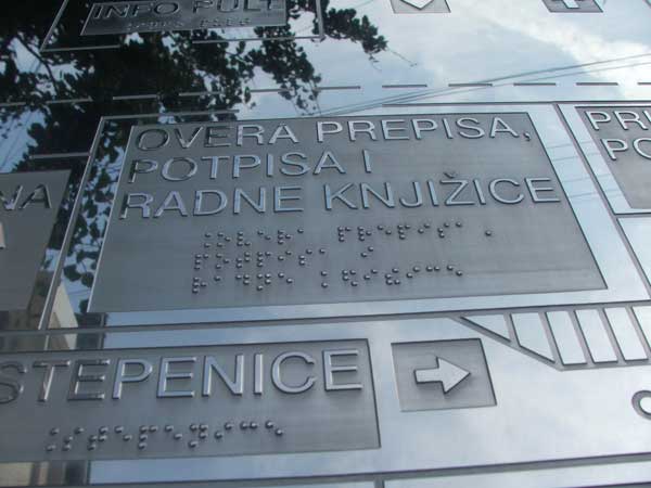 oznake prostorija, reklamni privesci i satovi, kućni brojevi i sl.